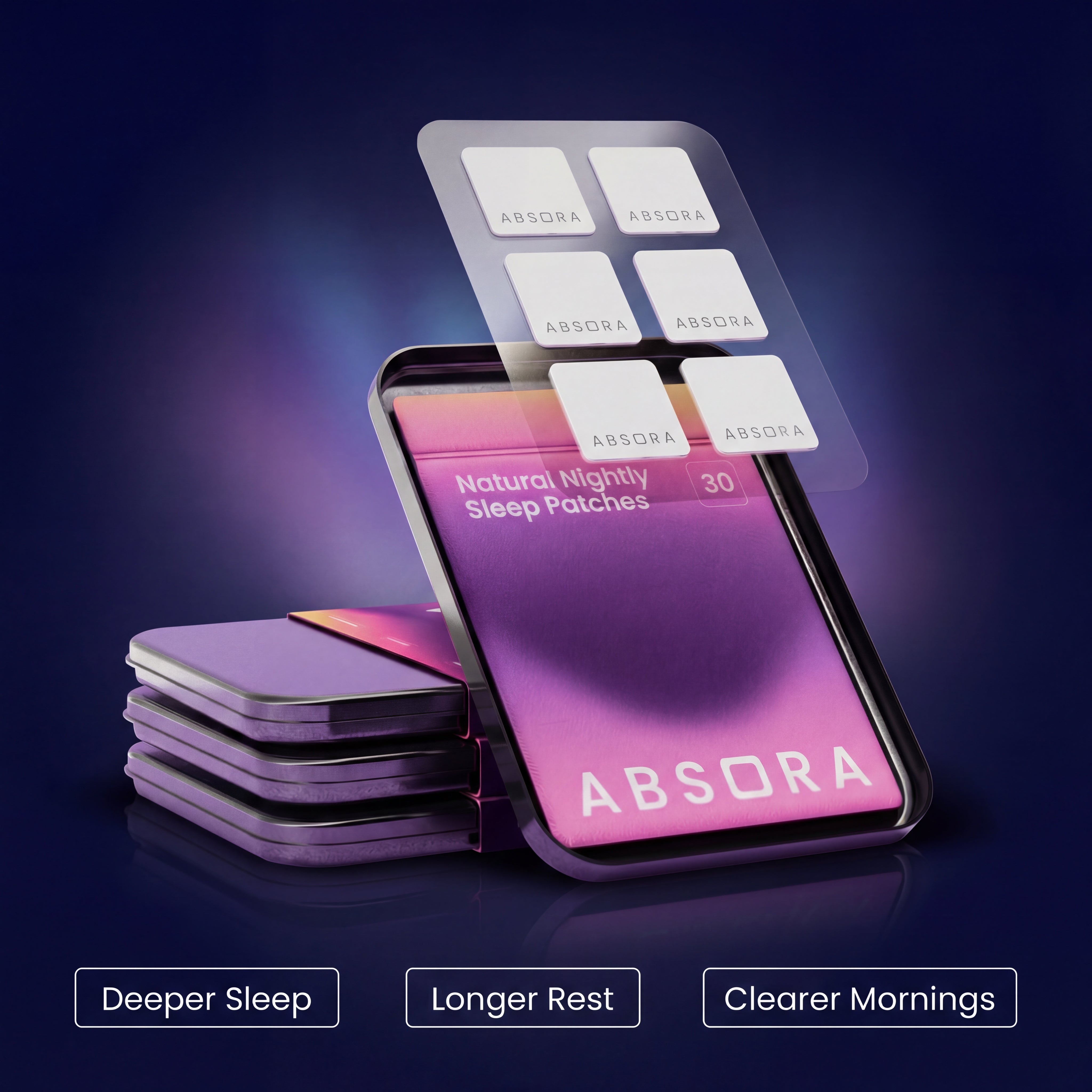 Absora uses a gentle, 3-layer patch system that delivers natural, calming ingredients steadily through your skin - for smooth support all night, without pills or melatonin.
