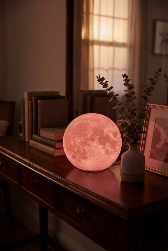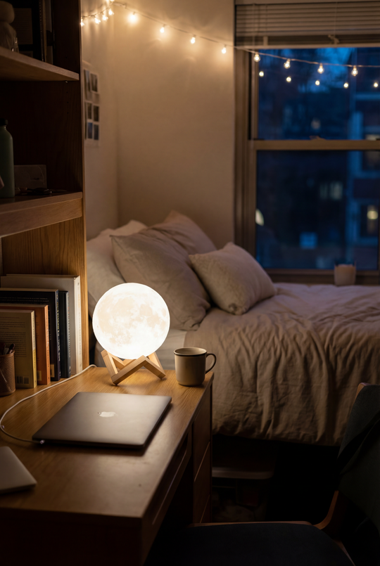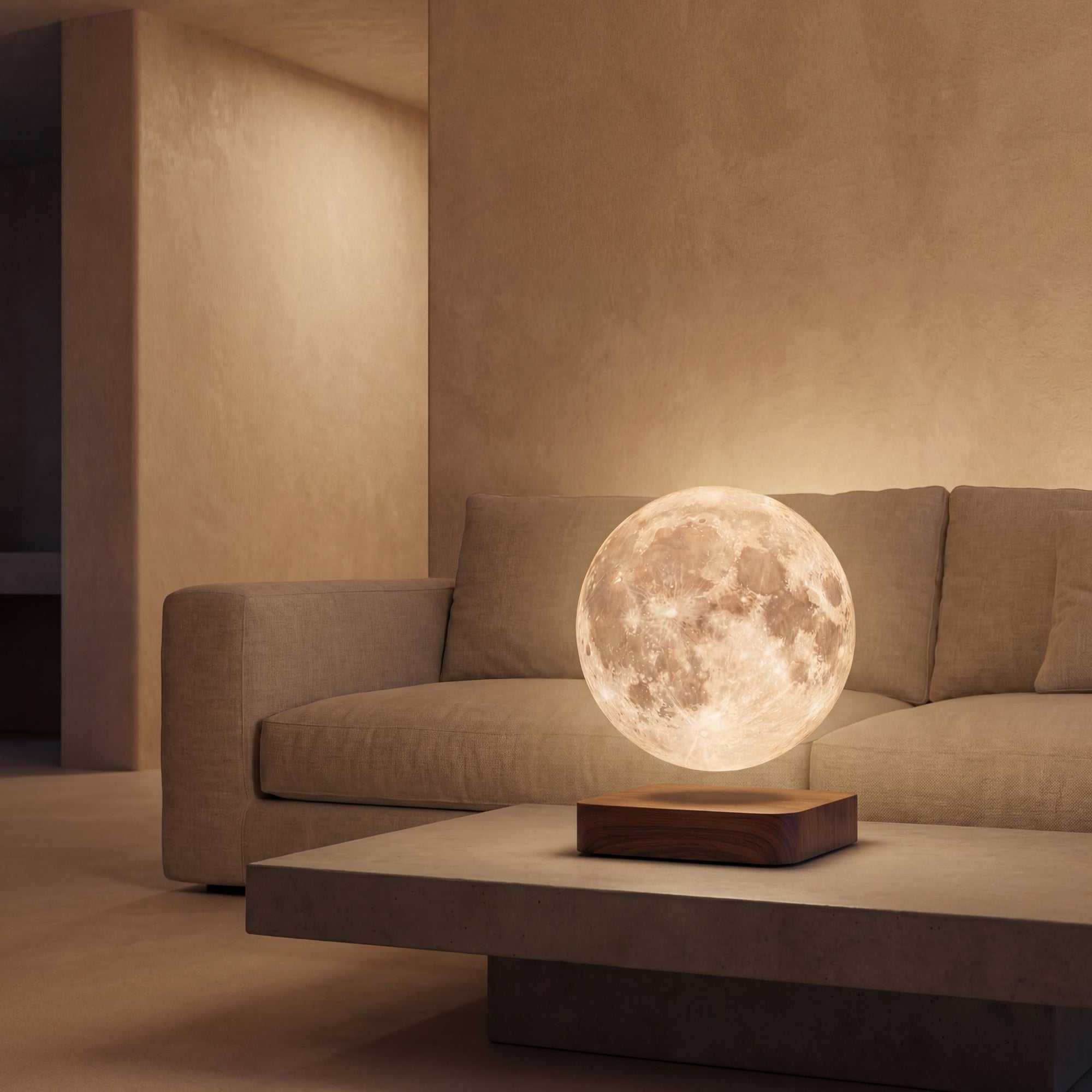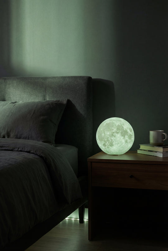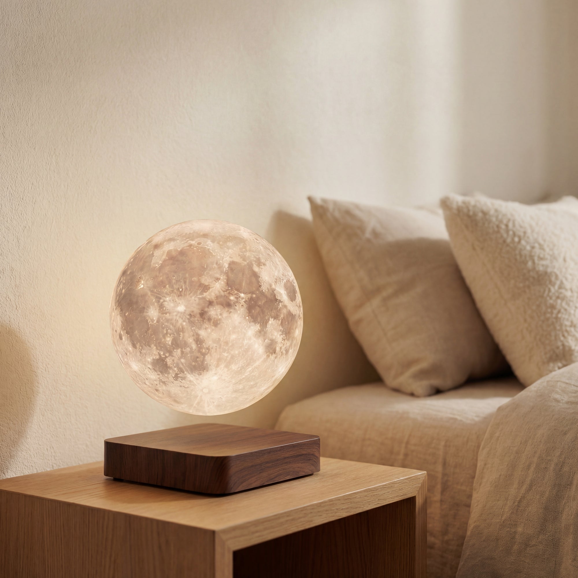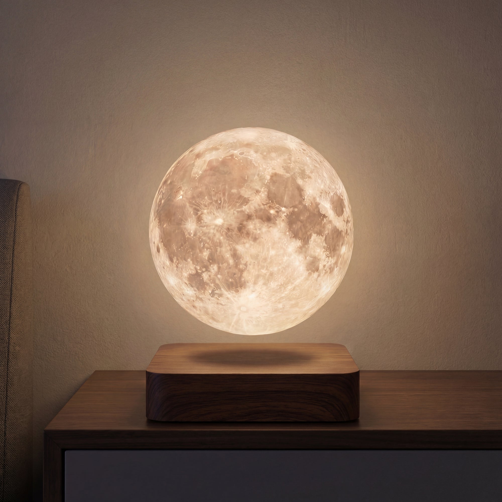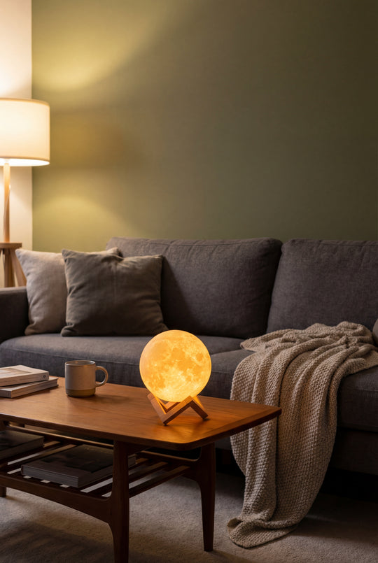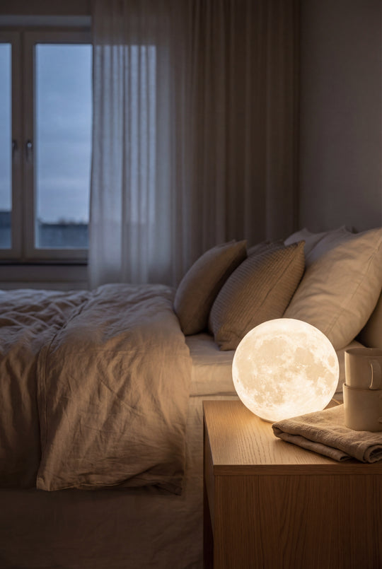 Harsh overhead lighting keeps your brain alert. The Levitating Moon Lamp replaces that with suspended, low-glare warmth — calm, not stimulating.