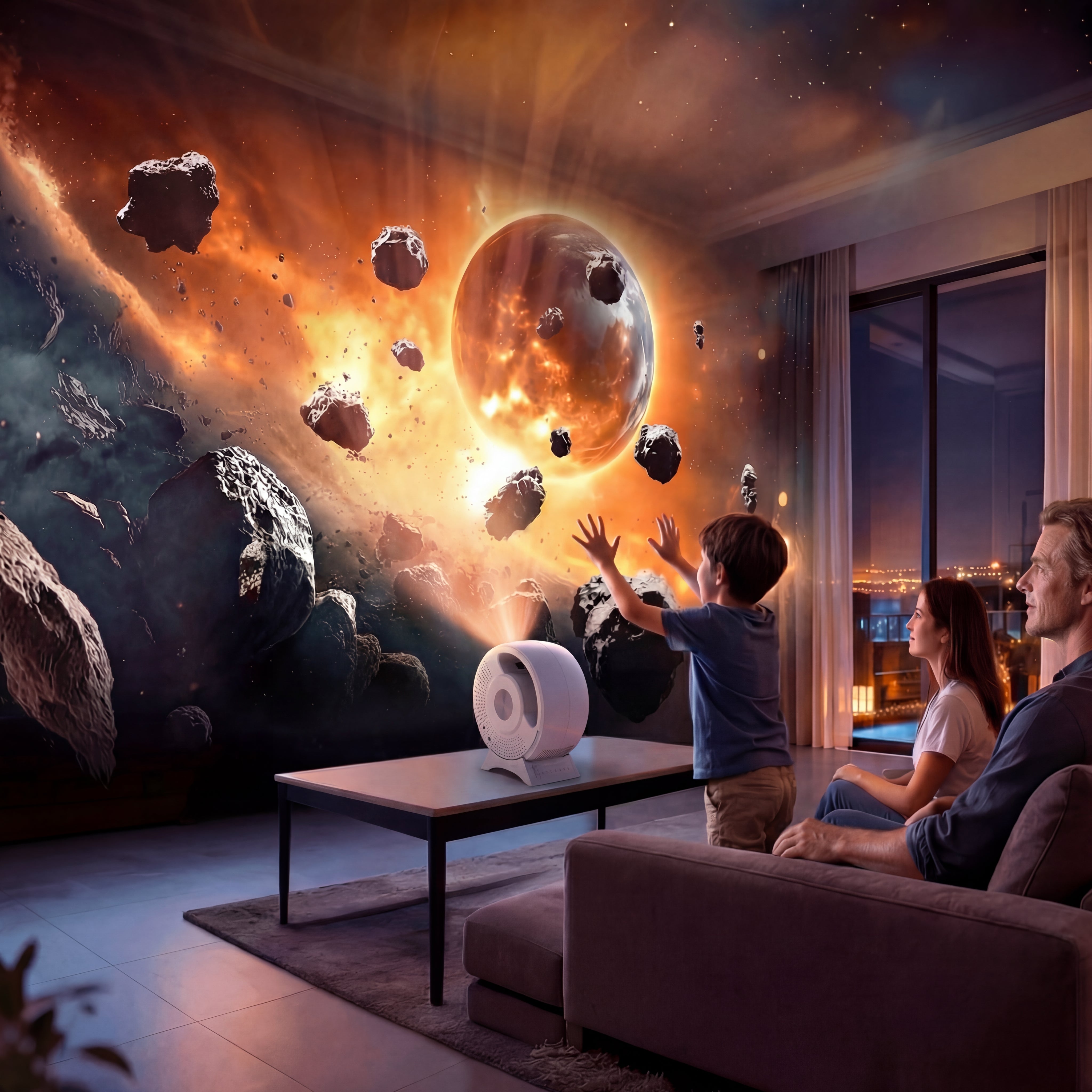 The Atlas Projector fills your walls and ceiling with 60 vivid HD scenes — from deep space to enchanted forests. One click and your room becomes another world.